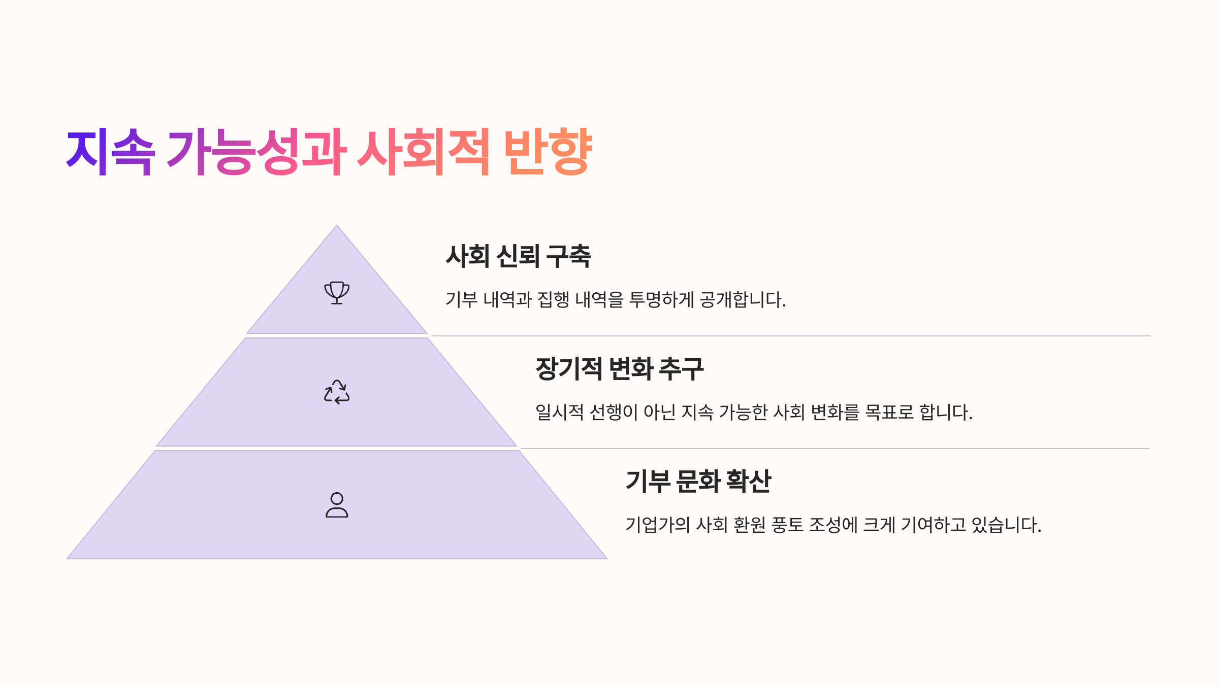 단순히 일시적인 선행이 아닌, 꾸준한 사회 환원과 나눔의 실천으로