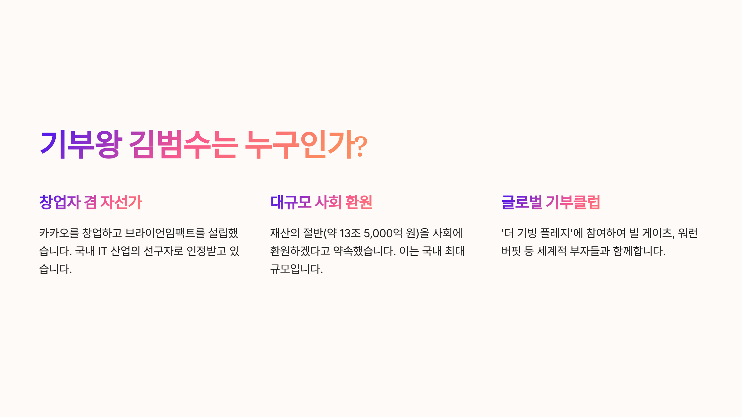 대한민국에서 가장 많은 금액을 기부한 공인은 바로 김범수 카카오 창업자입니다.