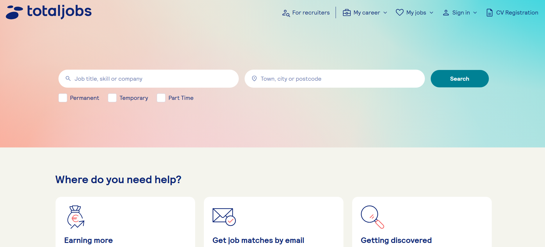 Totaljobs는 영국 최대 규모의 종합 취업 포털로, 취업 순서는 상세 프로필 등록, 맞춤형 이력서 업로드, 영국 지역별/산업별 일자리 검색, 온라인 지원 및 면접 조율의 단계를 거칩니다. 필요 서류는 영국식 CV, 커버레터, 비자 및 취업 자격 증명서, 학위 인증서, 추천서입니다. Totaljobs의 특징으로는 첫째, 영국 전역의 다양한 산업과 직종을 망라하는 방대한 채용정보 데이터베이스를 갖추고 있고, 둘째, 브렉시트 이후 변화된 EU 시민 및 외국인 취업 규정에 대한 최신 가이드를 제공하며, 셋째, 영국식 CV 작성법과 면접 팁 등 현지화된 취업 준비 자료가 풍부하고, 넷째, 산업별 급여 벤치마킹 도구로 적정 연봉 협상에 도움이 되며, 다섯째, 이력서 검색 데이터베이스를 통해 채용담당자가 직접 유망한 인재를 발굴하는 리버스 리크루팅 시스템을 운영합니다.