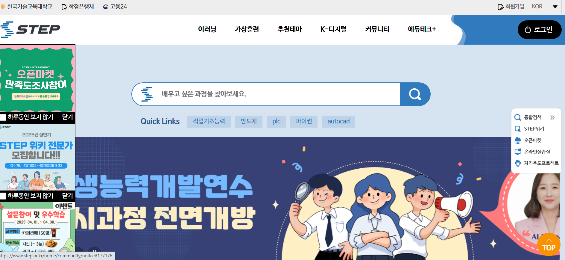 한국기술교육대학교가 운영하는 온라인평생교육 포털 플랫폼으로,