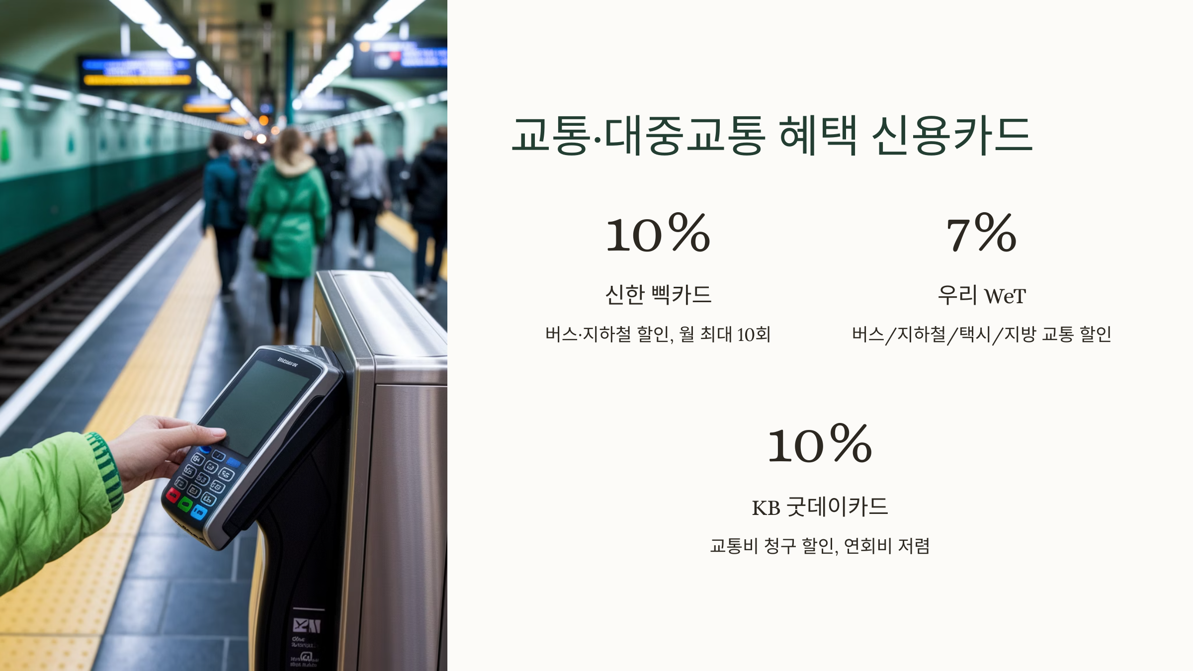 | 신한 SOL Deep 카드 | 대중교통+택시 통합 7% 할인 | 실용성과 혜택 모두 잡기 |