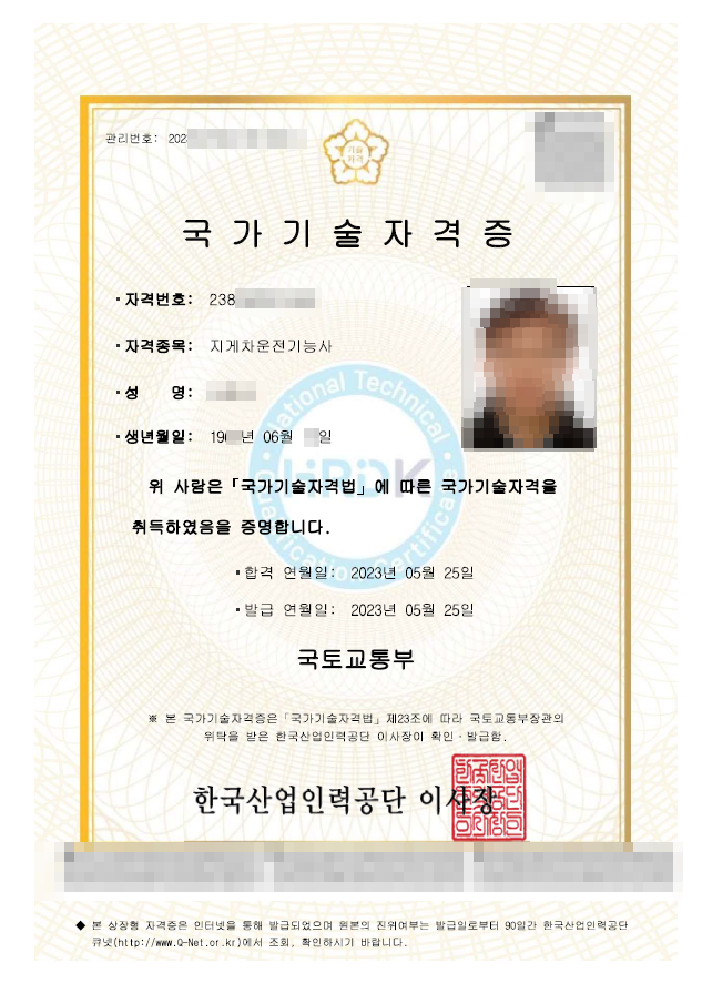 - 취득 방법: 교통안전공단 시험 + 적성검사