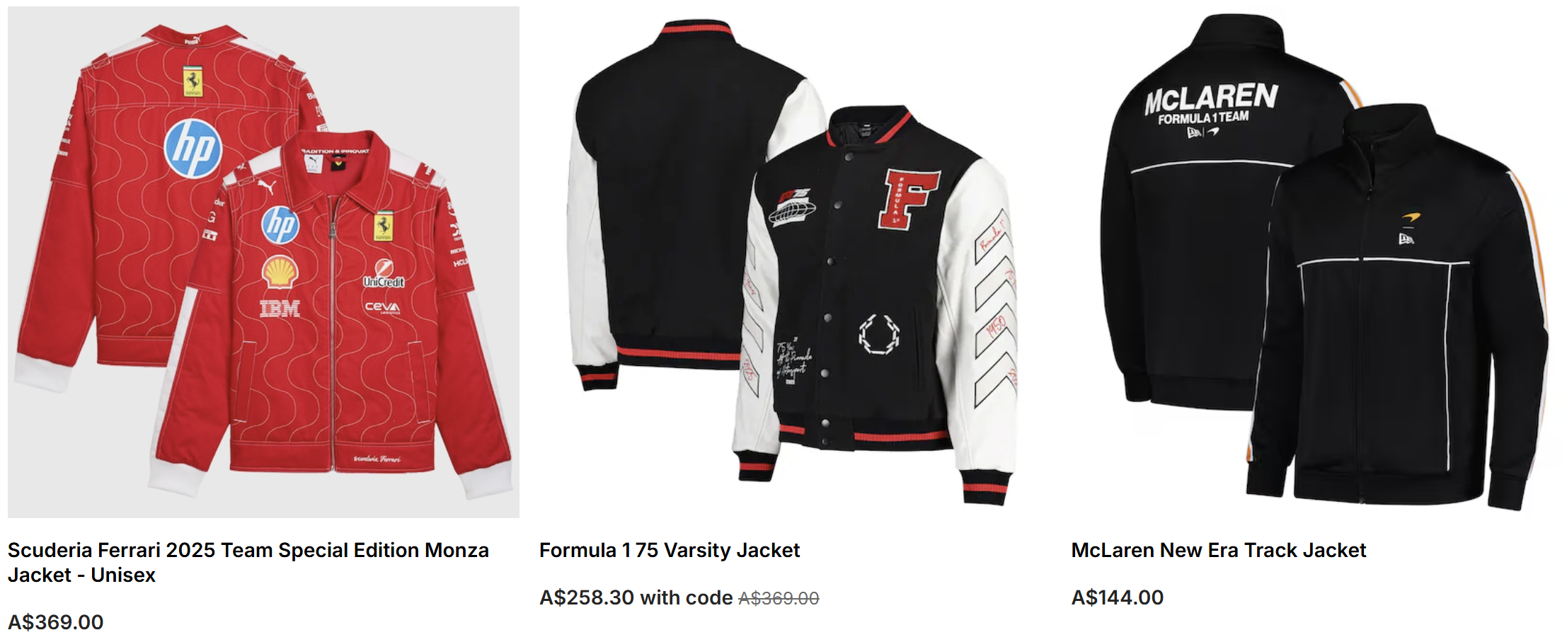 - F1 스토어는 시즌별 할인, 특정 팀/선수 관련 이벤트, 신규 가입자 할인 등을 제공합니다.