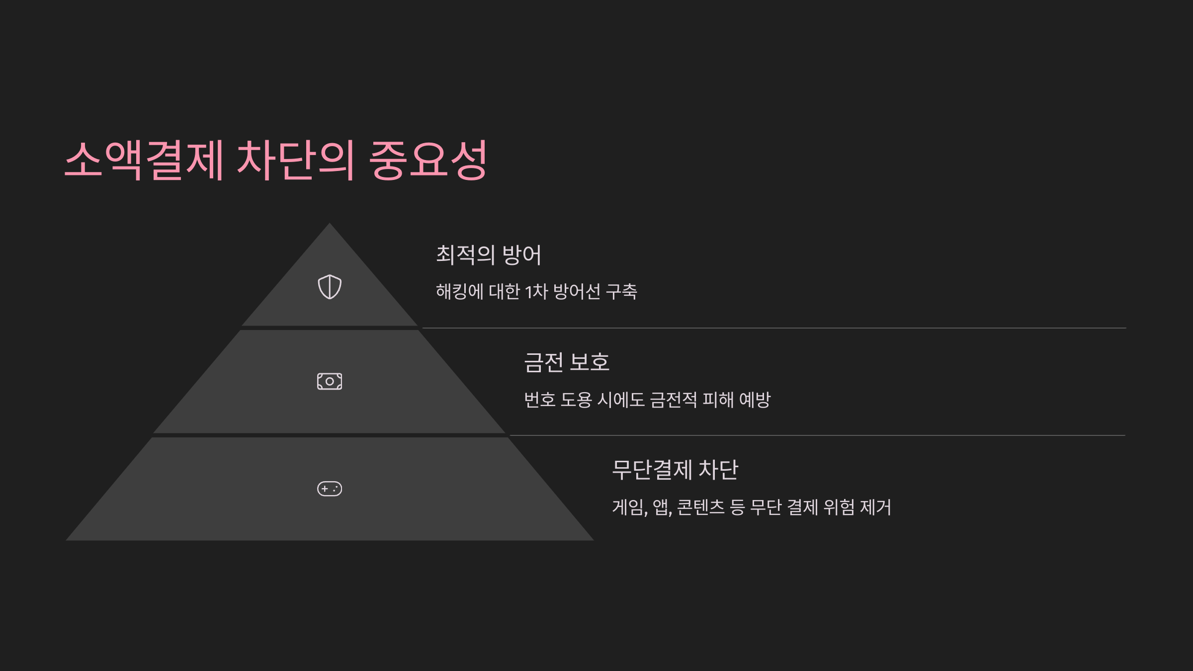 💸 소액결제 도용: 복제된 유심으로 본인 확인 절차를 통과해 게임, 앱, 콘텐츠 등의 소액결제를 도용할 수 있습니다.